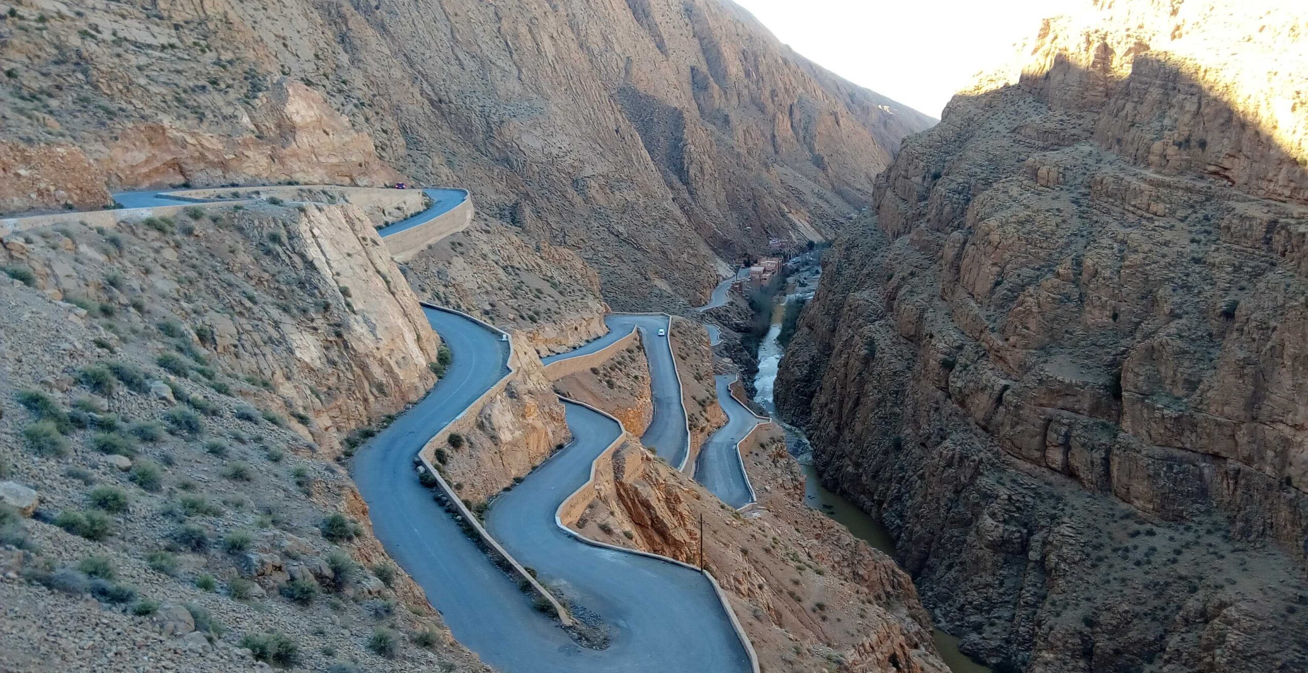 Leave Marrakech behind and journey through the breathtaking High Atlas Mountains, crossing the dramatic Tizi-n-Tichka Pass. Witness the charm of traditional Berber villages before arriving at the legendary Ait Ben Haddou, a UNESCO World Heritage Site known for its cinematic history. After exploring the ancient kasbah, continue to Ouarzazate, the “Hollywood of Africa,” home to the famous Atlas Film Studios. Passing through the Valley of Roses, we reach the stunning Dades Gorges, where you’ll spend the night in a charming riad or hotel.