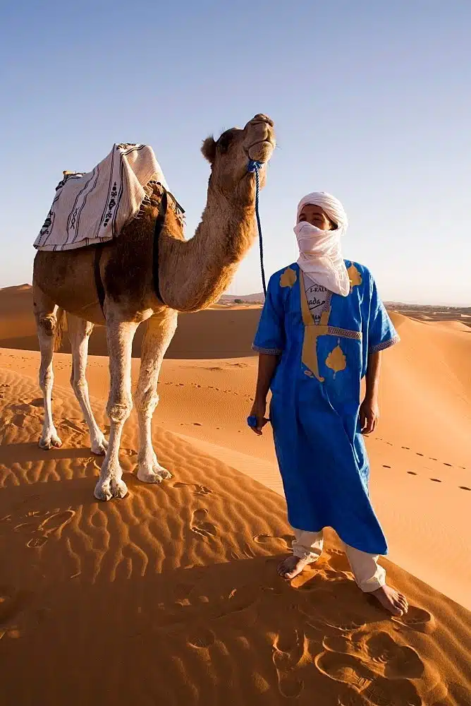 Most nomads today live from their cattle. They spend some time in a place that meets the needs of their herd in terms of water and grazing, and they live in tents that they carry with them when they move. The tents consist of a wooden beam covered with different types of fabric, such as wool and cloth, which provide protection from wind and sand while allowing the necessary mobility for the constant search for water and pasture land. The Tuareg are often known by the nickname “Blue Man”, while the Berbers are not associated with any particular color, although their clothing is remarkably colorful, unlike most Arab societies. Many turbans are blue because a natural dye is used, indigo, which colors the skin.