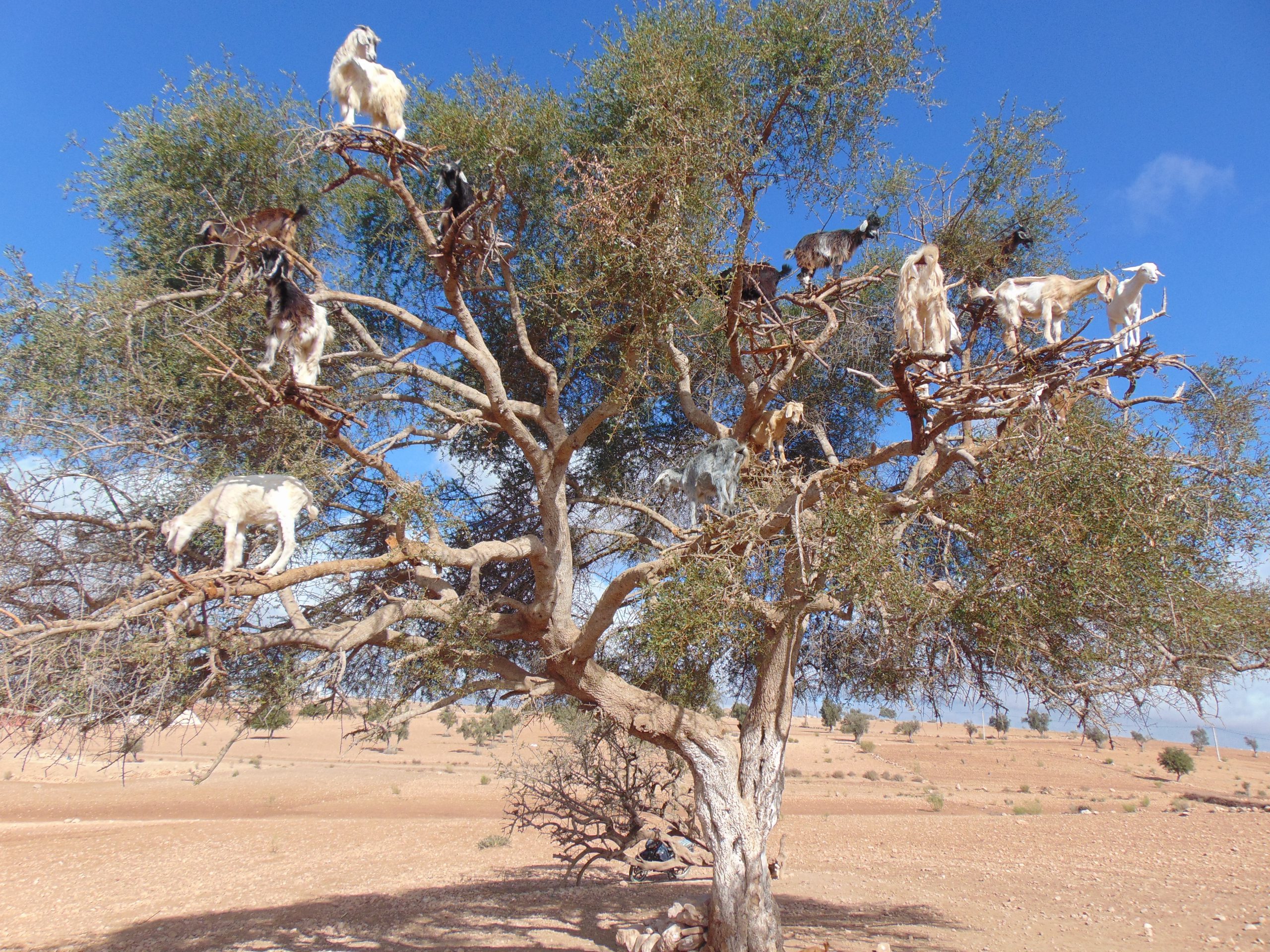 On the dusty road from Marrakech to the coastal town of Essaouira, argan trees pepper the reddish-brown-colored countryside. The contorted, sharp plants raised particularly in southwestern Morocco and western Algeria may not be good-looking, but they bring lots of fans. Herds of hungry goats pose in their nefarious branches, sometimes more than 10 in a single tree.