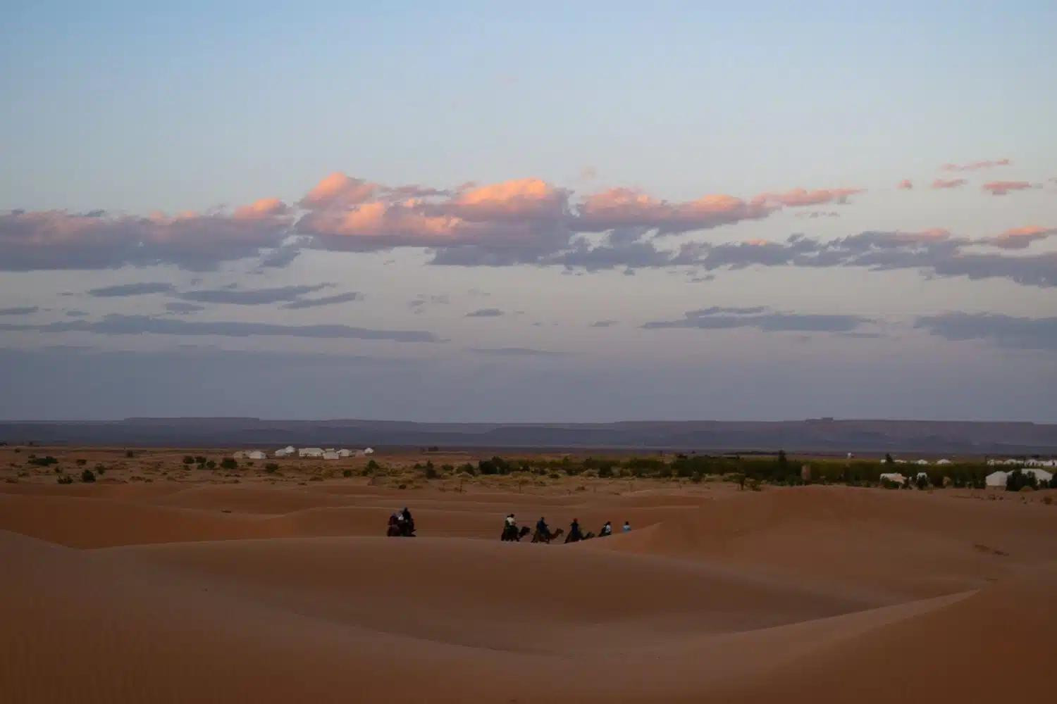 Today, we head deeper into the desert, making a stop at Tamgrout, a village known for its ancient Koranic library and traditional pottery workshops. Continuing south, we arrive at M’Hamid, the last town before the vast Sahara. From here, we take an off-road adventure across the dunes to reach the spectacular Erg Chigaga, the largest dune area in Morocco. Experience a true desert adventure with a camel trek and enjoy a magical sunset over the golden sands. In the evening, relax at a desert camp under a sky full of stars while enjoying traditional music around the fire.